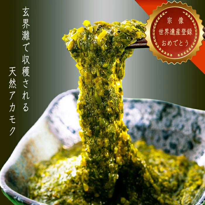 日本海に面する九州北部福岡県宗像市、最近では世界遺産にも登録された「神宿る島・宗像沖ノ島」で有名になりました。 漁業盛んな宗像は海女発祥の地でもあり、綺麗な海と豊富な魚介類は全国でも有数の漁場として知られています。 その聖海、宗像で採れるあかもくは鮮度、品質が一級品と言えるでしょう。 また、自社ではそれを海中で目利きすることで採取の時点で選び抜かれたあかもくを水揚げでき、素早く加工することで風味をおとすことなく製造することができます。