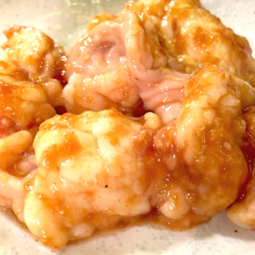 ●黒毛和牛の小腸をカットし味噌だれに漬け込みました。