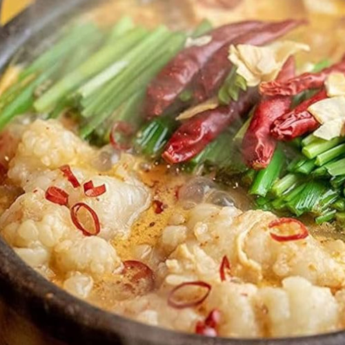 原材料:牛内臓(小腸)、(スープ)白味噌、ニンニク、生姜、とうがらし、みりん、調味料、保存料、酸味料、着色料、香辛料、ポークエキス、野菜エキス、魚介エキス(大豆・小麦含む)