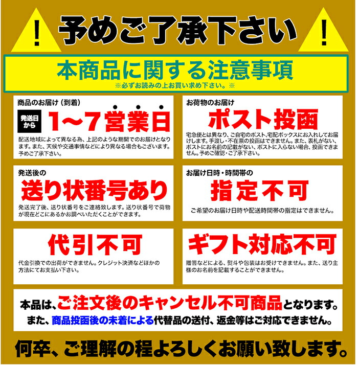 ・商品投函後の未着による代替品の送付、返金等はご対応できません。