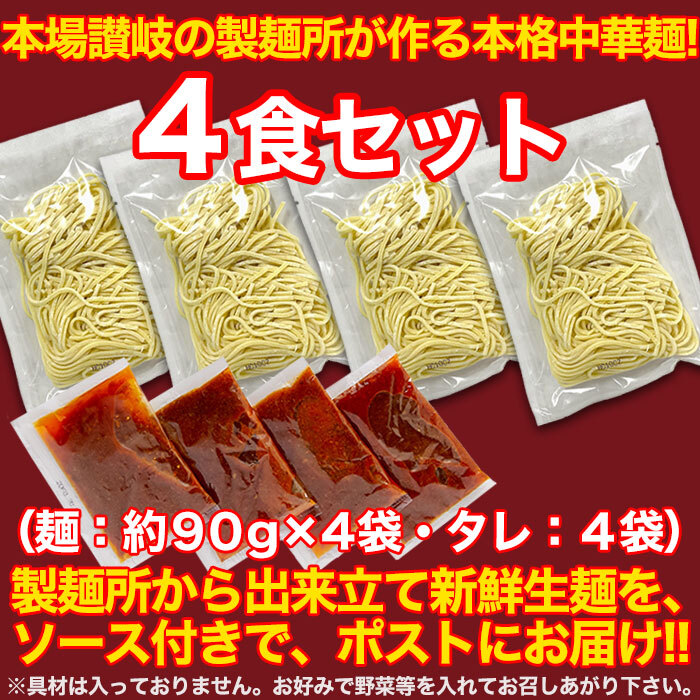 【ゆうパケット出荷】本場讃岐の製麺所が作る本格中華麺!!台湾まぜそば4食(90g×4袋)