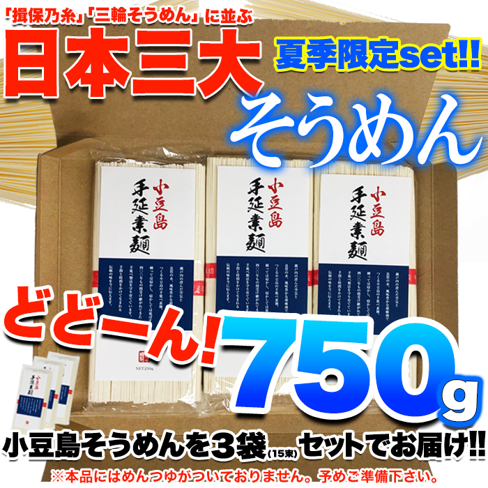 【ゆうパケット出荷】期間限定!日本三大そうめん小豆島手延べそうめん750g(5束×3袋)