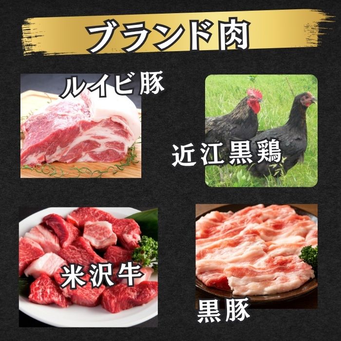 ●ブランド肉(近江黒鶏/土佐はちきん/米沢牛/淡路牛/静岡県産LYB豚)