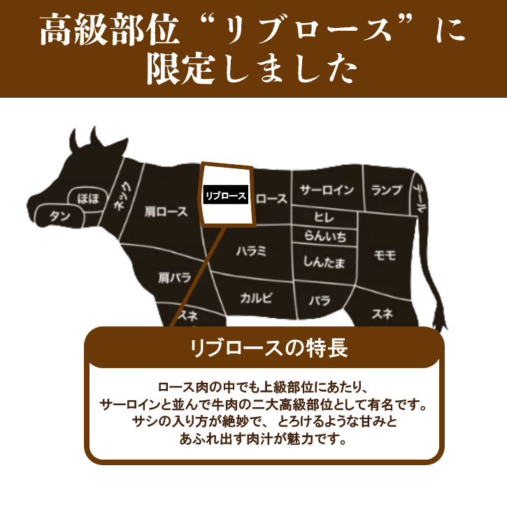 リブロースはサーロインと並ぶ高級部位で、1頭からとれる量が限られています。