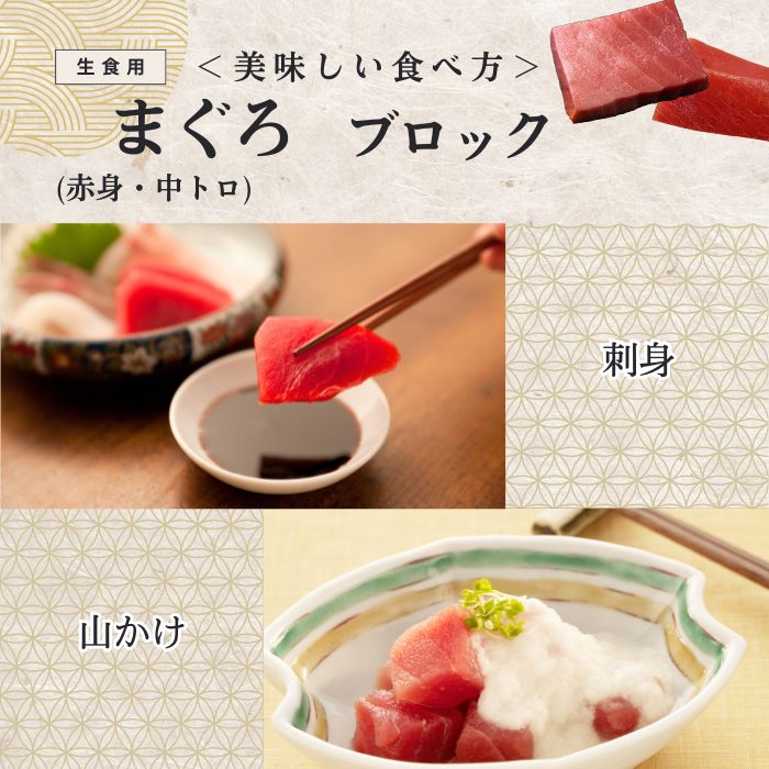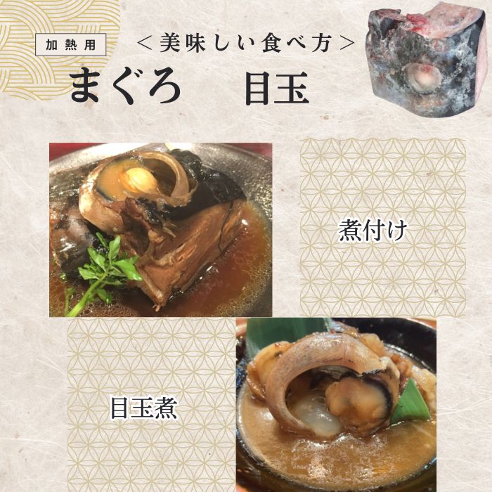 ●セット内容:カマ1個(約500g)、目玉付きブロック(約1kg)。テール1枚(約300g)、赤身/中トロブロック(約300g)