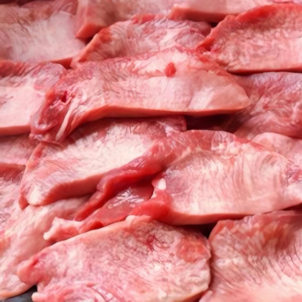 サイズは約6ミリ〜8ミリです。一般的に厚切り牛タンとしてうたえるサイズです。形はその時の牛タンの大きさにもよりますので多少サイズ感にバラつきはあります。