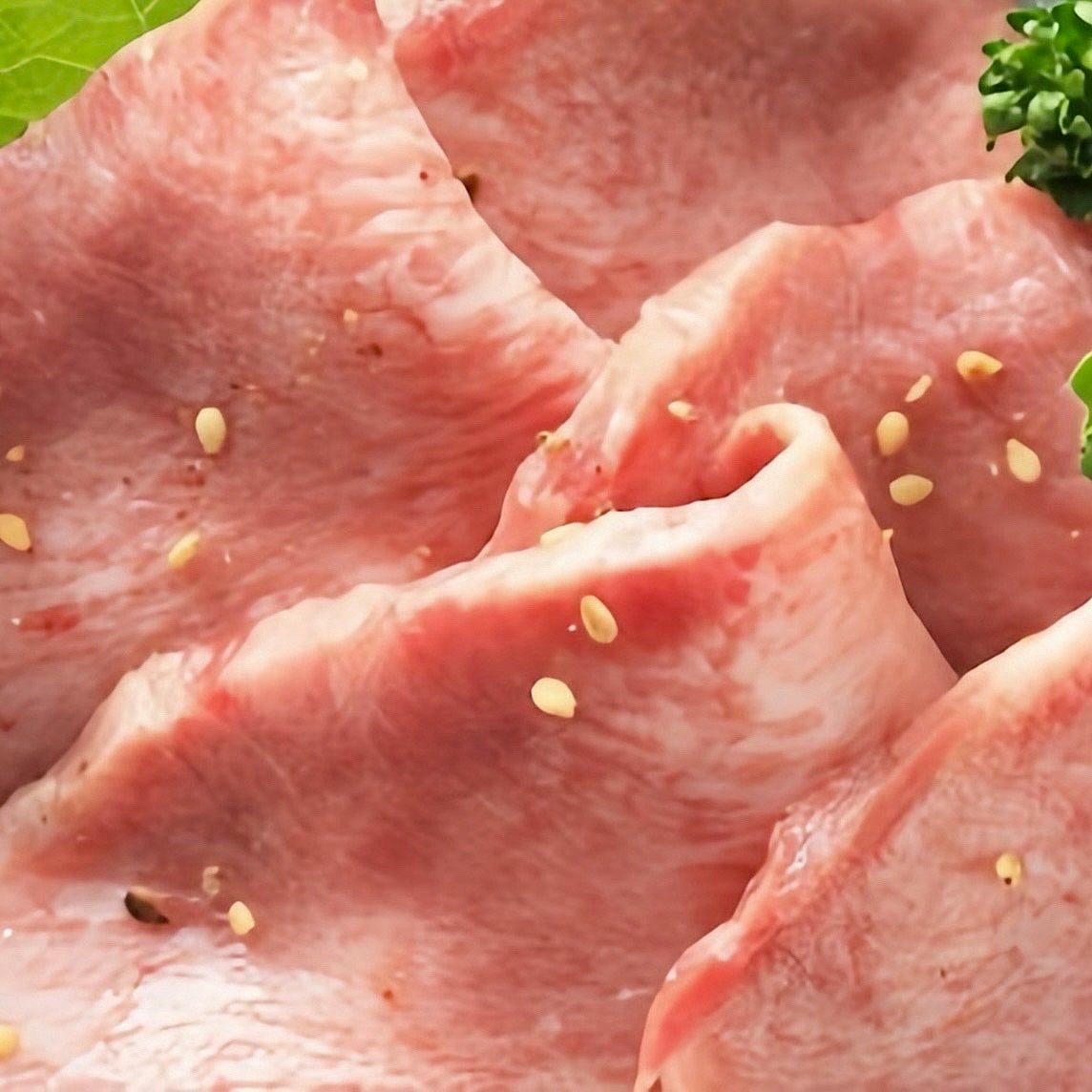 当店の霜降り厚切り牛タンは、赤身のタン先は使わず、タン元の霜降りの多い部分のみです(個体差はございます)。