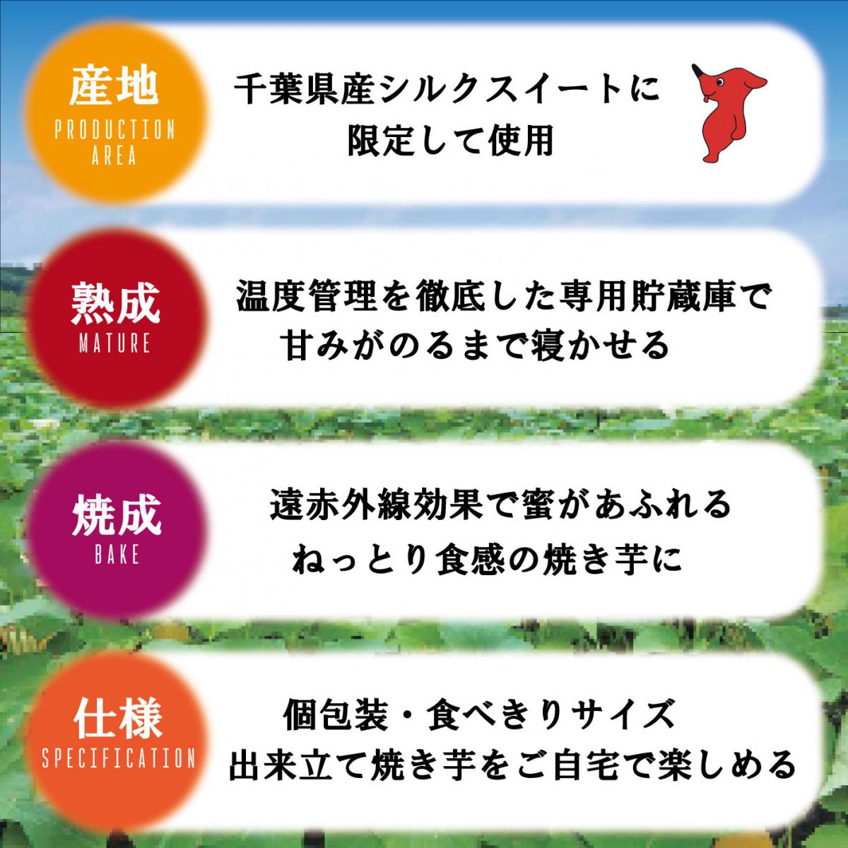 千葉県の大地で育ったさつまいもを、熟成、貯蔵し低温でじっくり焼き上げて甘みを最大限に引き出し、