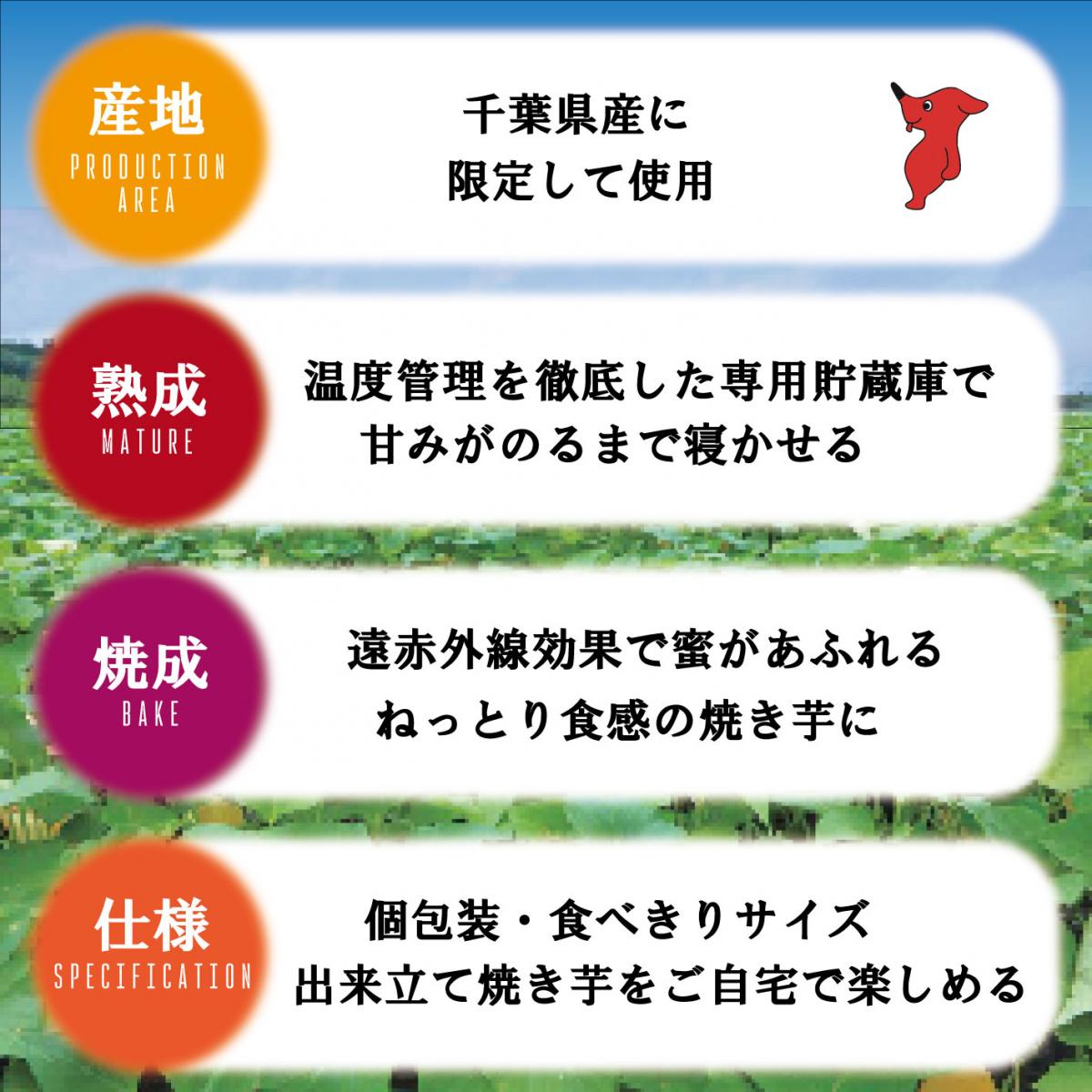 千葉県の大地で育ったさつまいもを、熟成、貯蔵し低温でじっくり焼き上げて甘みを最大限に引き出し、