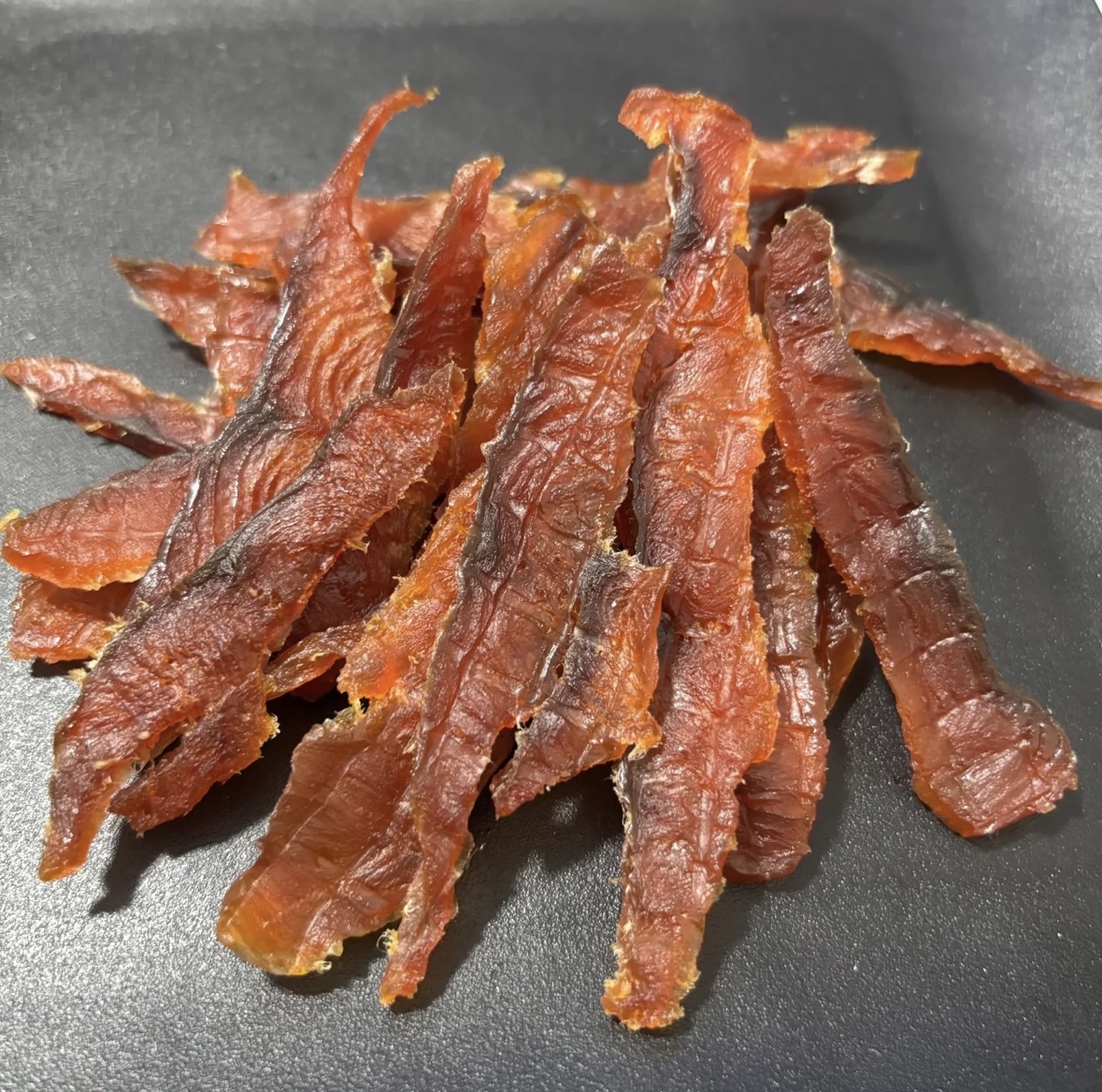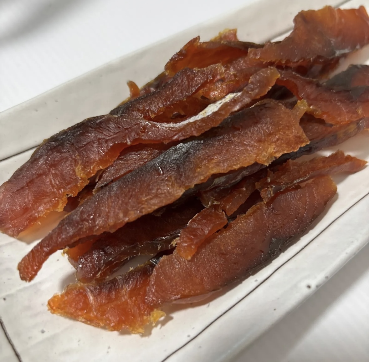 北海道産 鮭とばスライス 80g鮭とばは、鮭を半身におろして塩味つけ、乾燥させた商品です。