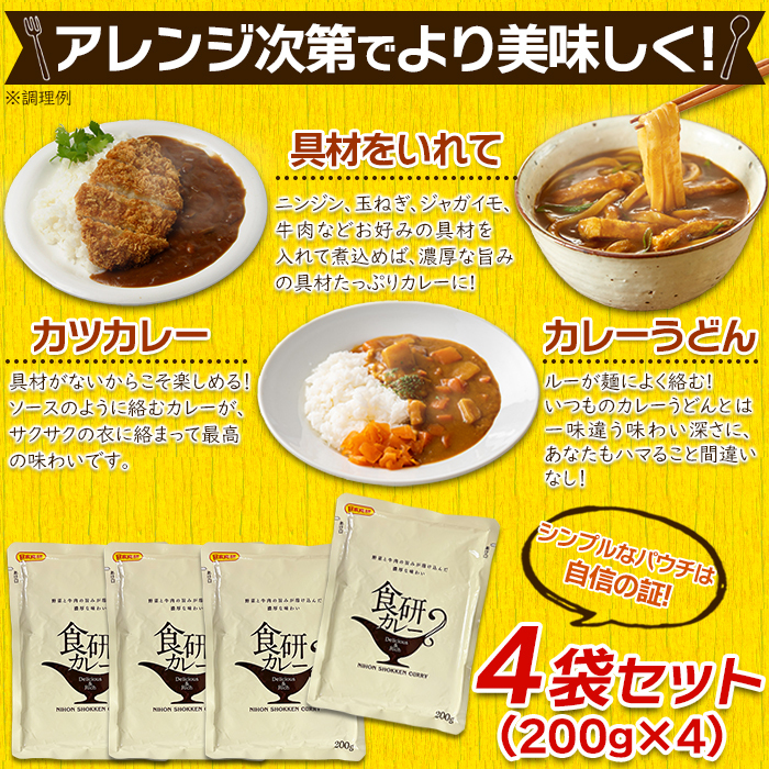 【ゆうパケット出荷】20種類以上のスパイス使用!美味しいレトルト食研カレー4食(200g×4袋)