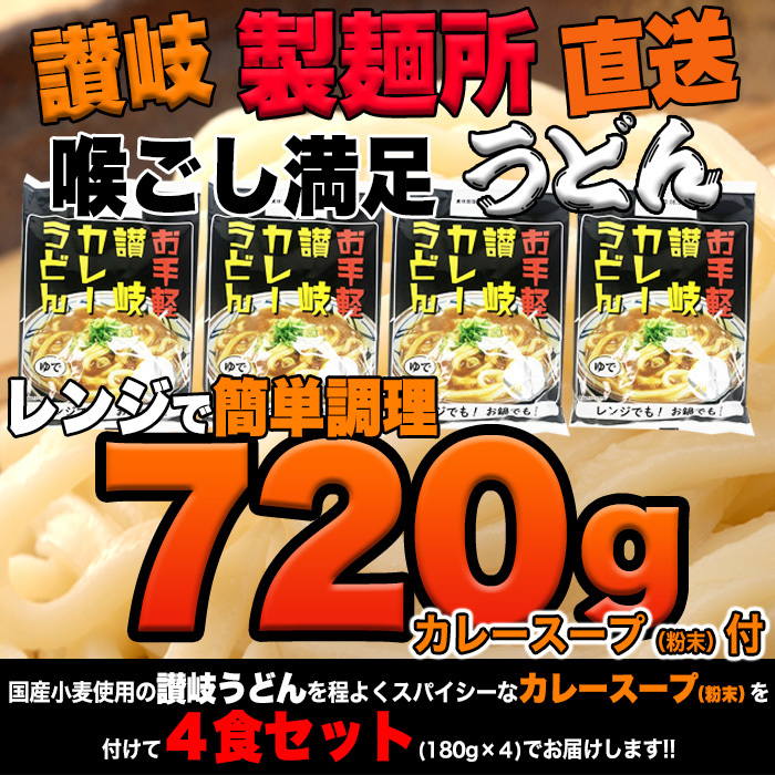 【ゆうパケット出荷】レンジで簡単!辛すぎないスパイシーなカレーうどん4食(180g×4)
