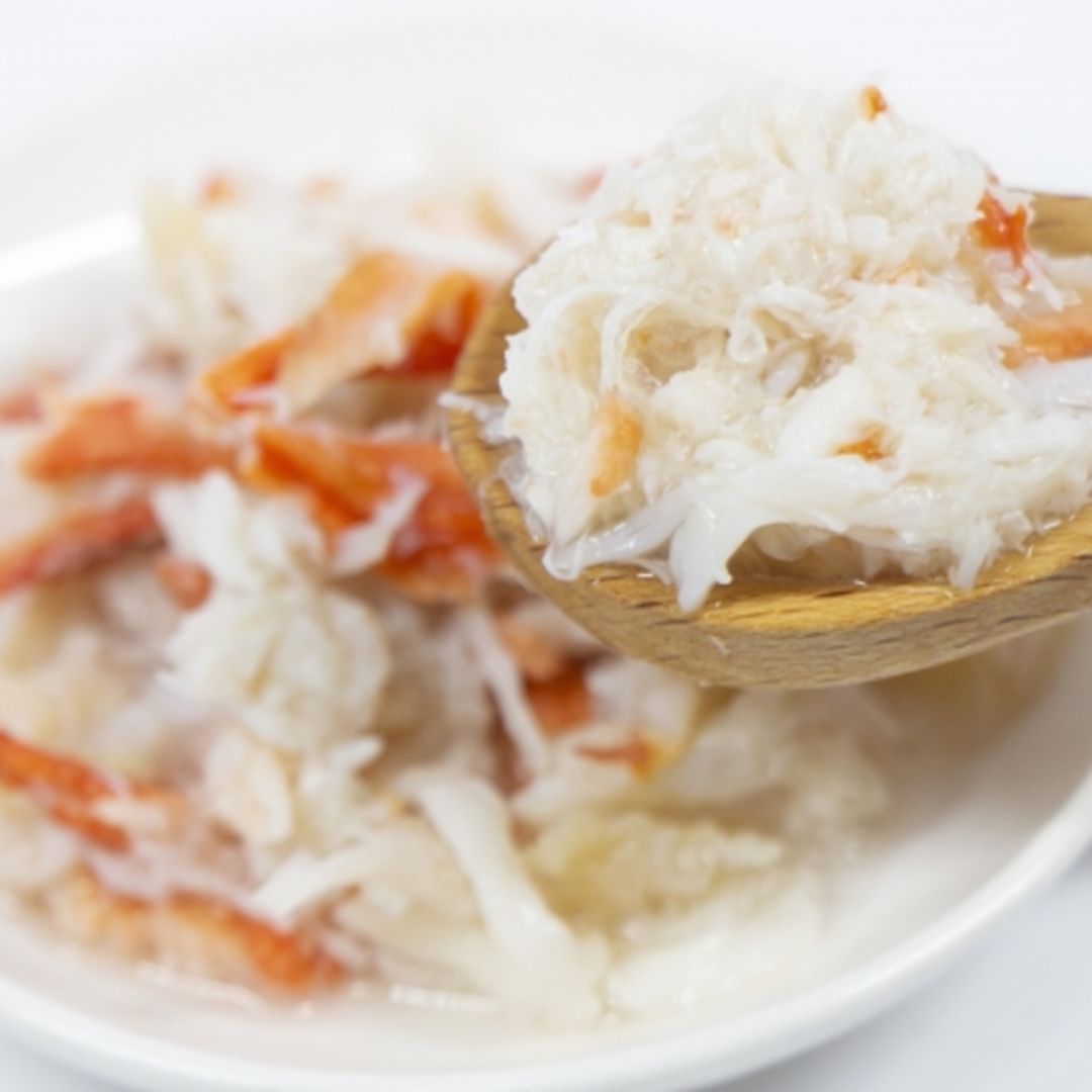 ●殻をむいて、ほぐし身の状態になっておりますのでそのままお料理にお使いいただく事ができ、とても簡単に手軽に蟹料理をお作り頂けます。