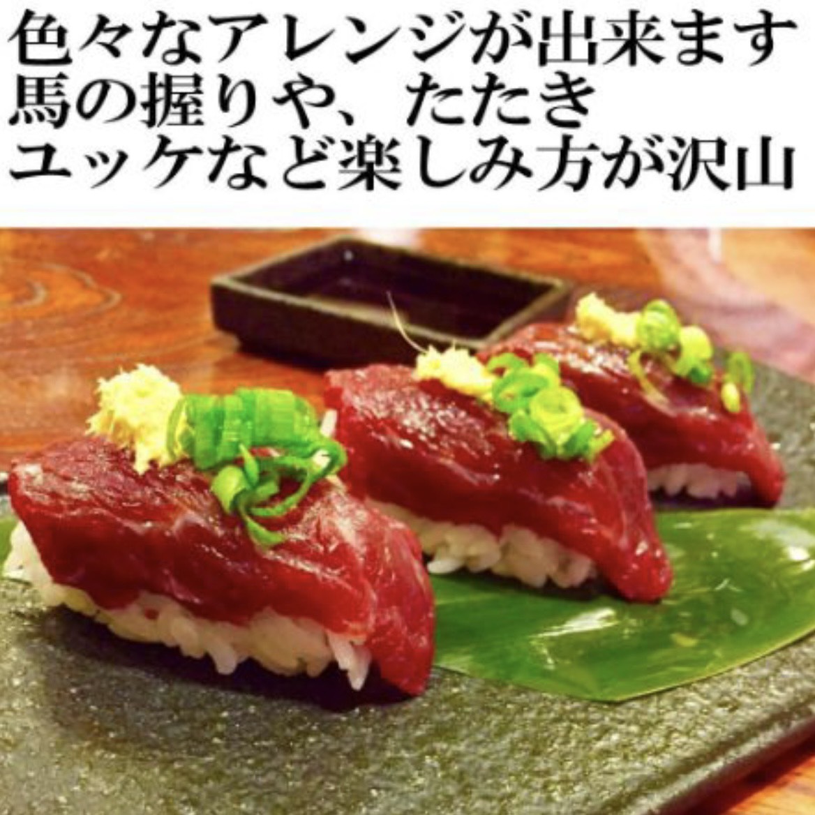 当店の馬刺しはさっぱりと臭みがないのが特徴でご好評いただいております。