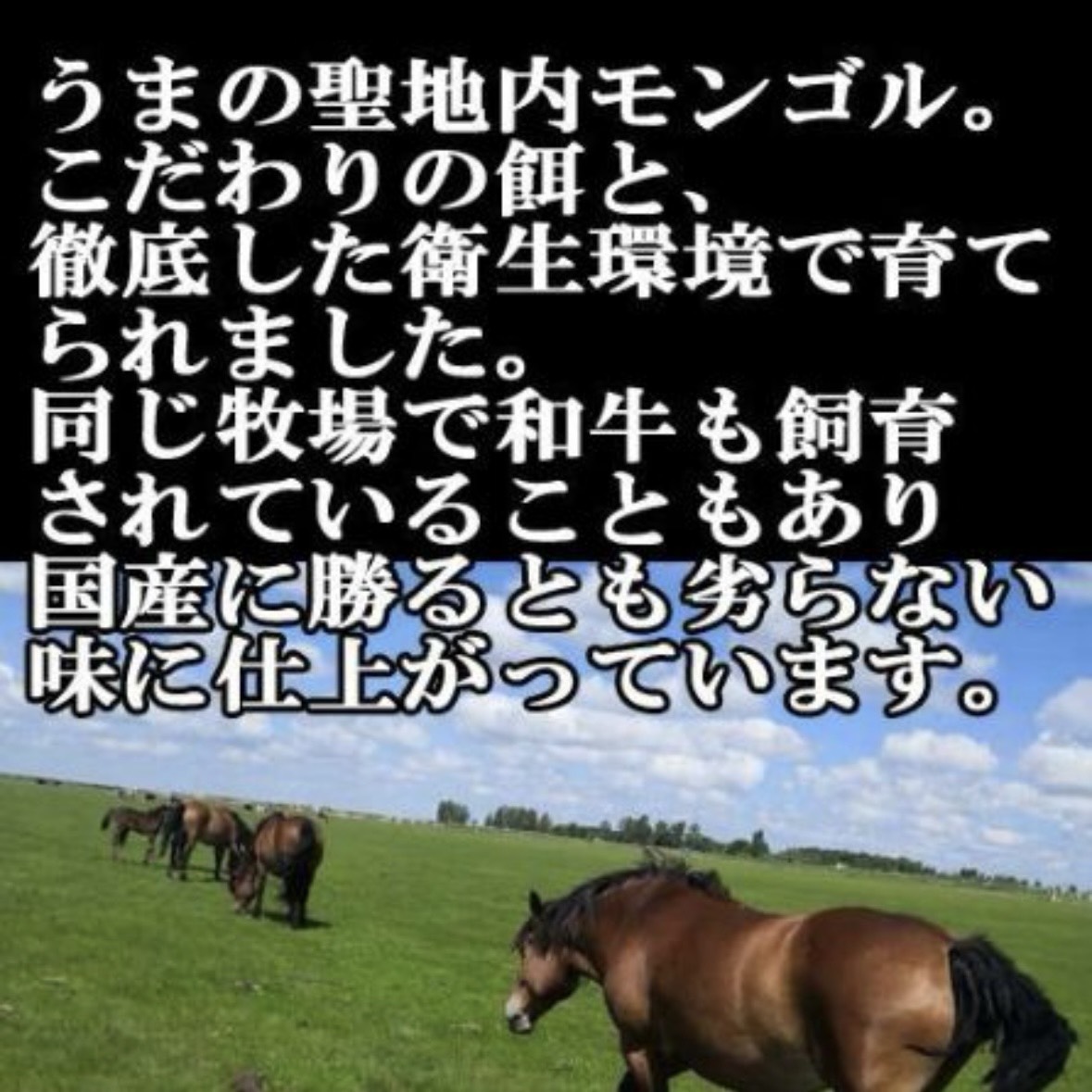 こちらの商品は馬のメッカ内モンゴルで徹底的な管理の元育てられています。
