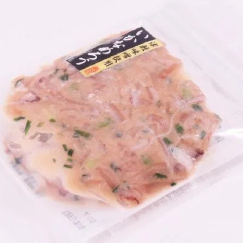 原材料:いか、みそ、ねぎ、醗酵調味料、しょうが、還元水飴、食塩、しょうゆ、にんにく、食酢/調味料(アミノ酸等)、pH調整剤、増粘多糖類、(一部に小麦・いか・大豆を含む)